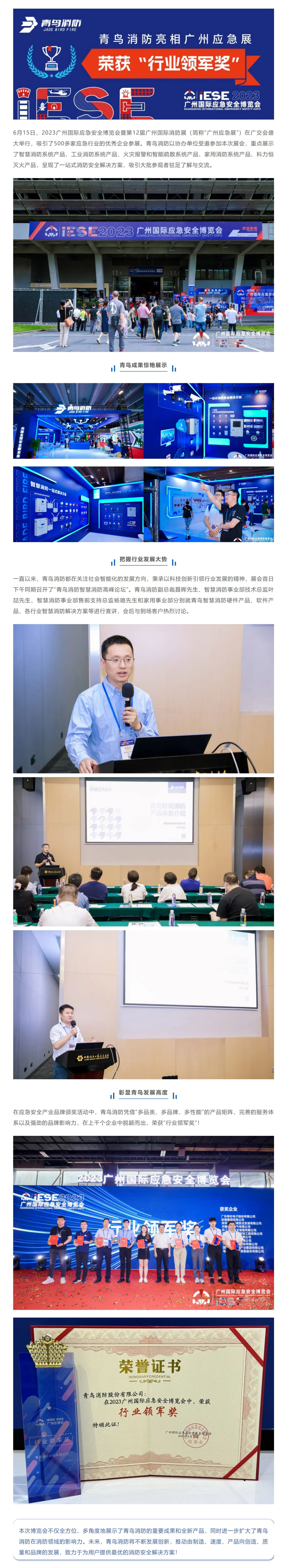 青鳥消防亮相廣州應急展 榮獲“行業(yè)領軍獎”